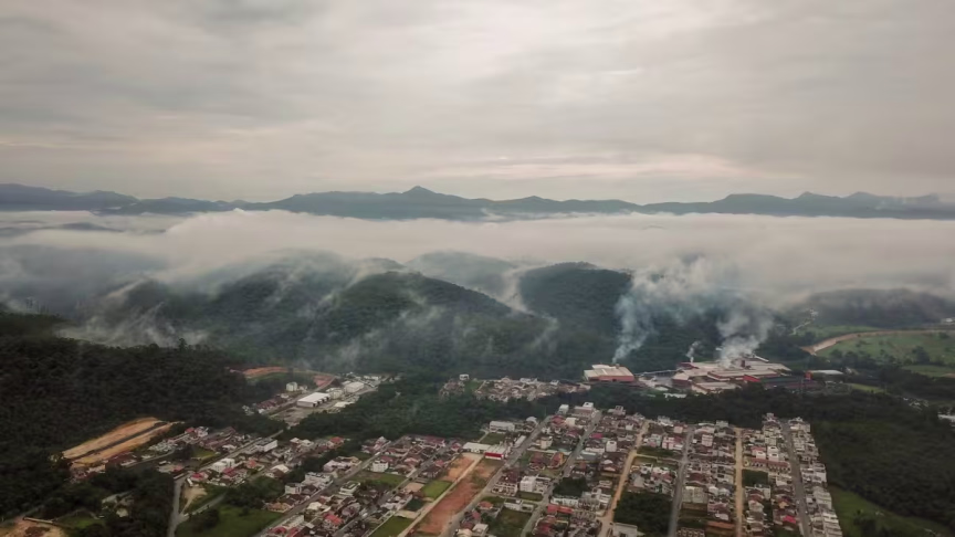 Imagem de Brusque no início da manhã desta segunda-feira na presença do céu encoberto sem chuva forte no município