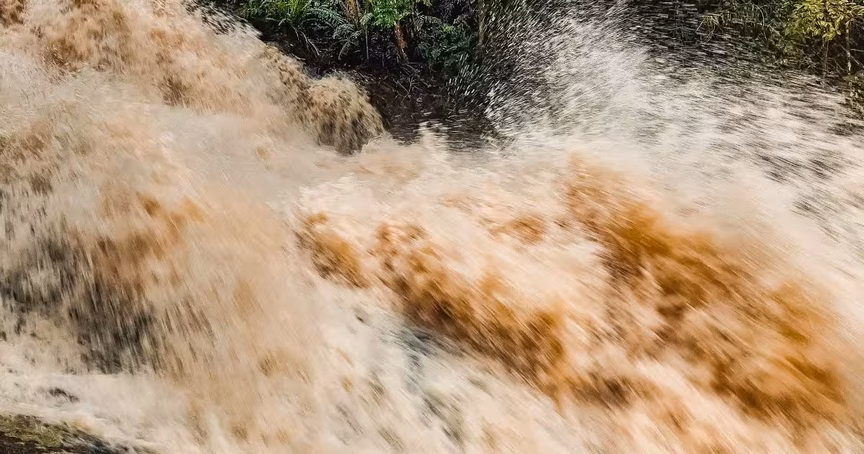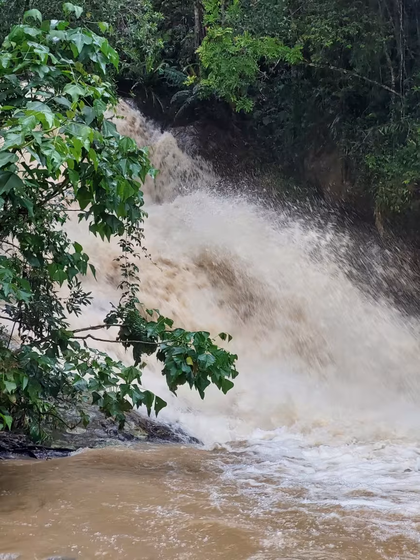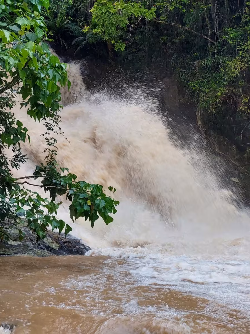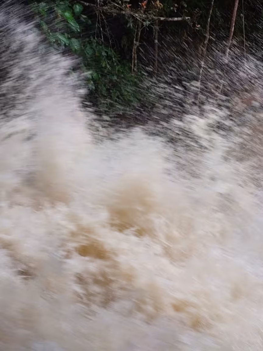 Chuva volumosa em Brusque faz cachoeira do Taquaruçu dar espetáculo; assista