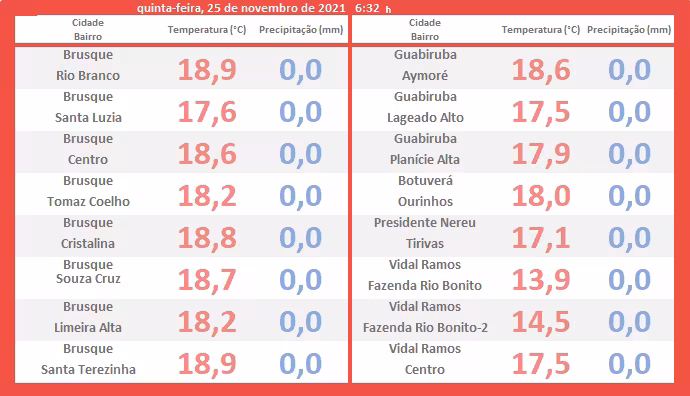 Sobre a nota acima resumida vamos falar mais adiante, pois agora, queremos trazer os detalhes do tempo da região de Brusque, observados durante a madrugada e amanhecer desta quinta.