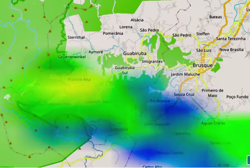 Em Brusque, os índices observados no período também estão bem abaixo do necessário para amenizar os efeitos da estiagem. Nos bairros do município, os valores oscilam entre 2 a 4 mm.