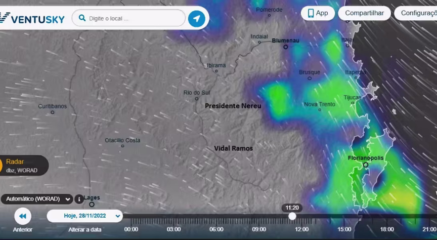 "Falando apenas da região de Brusque, o que estamos observando, até o momento, é esse sistema impactando de forma mais severa os municípios do Médio em direção ao Baixo Vale do Itajaí. E está poupando o Alto Vale, onde se concentram as principais nascentes do Itajaí-Mirim".