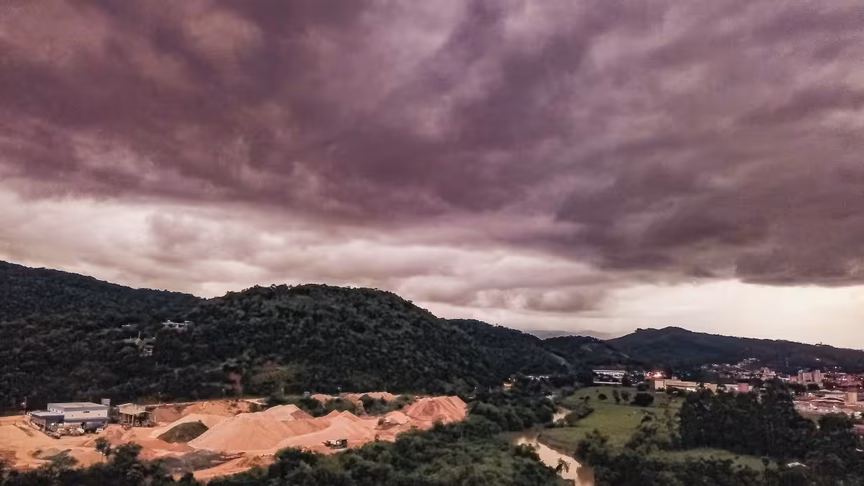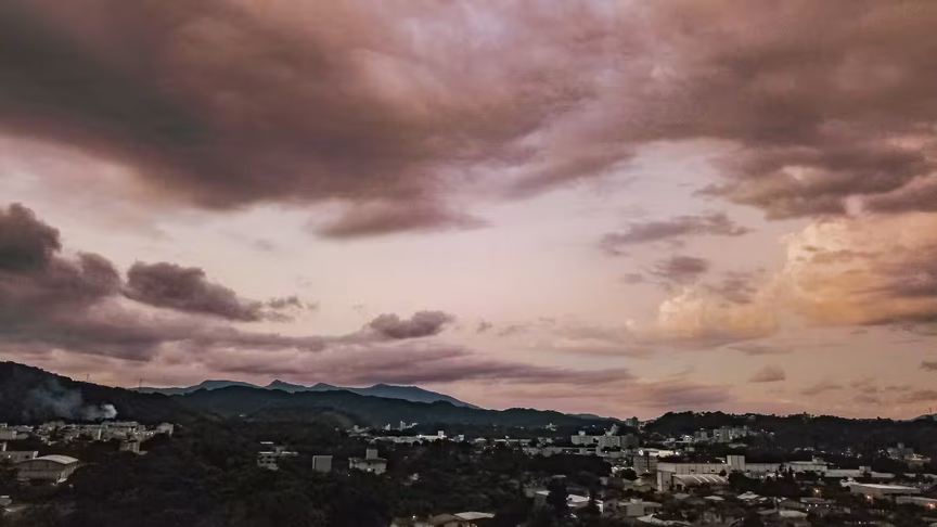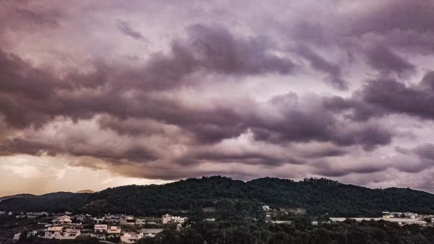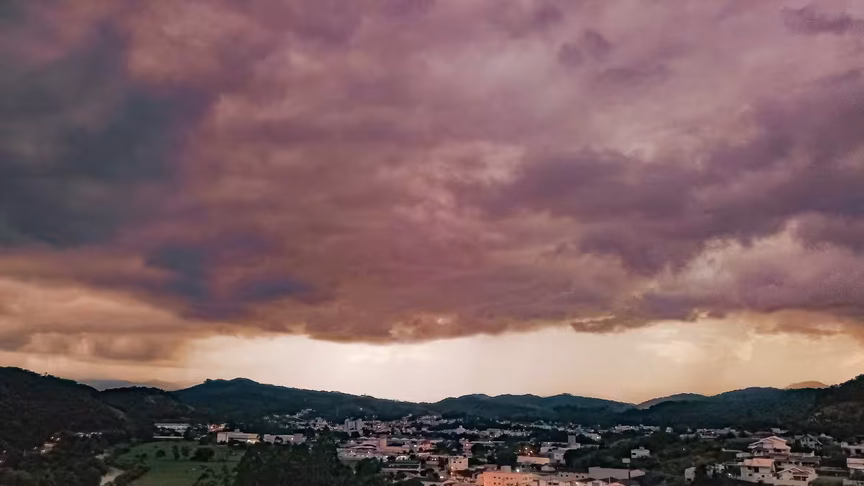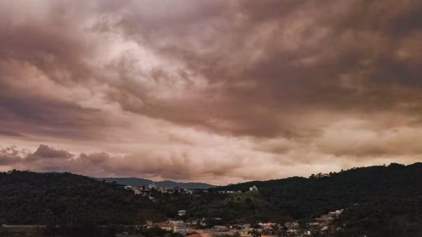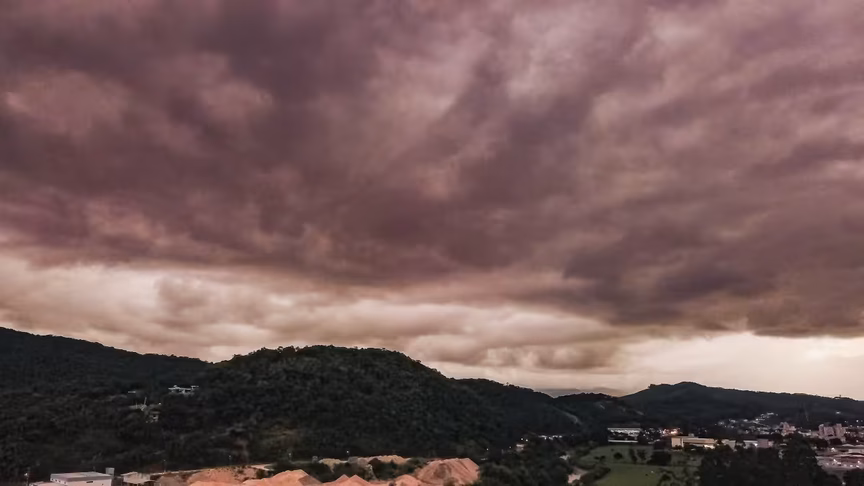 Depois de um dia ensolarado diante de poucas nuvens, o tempo em Brusque virou rapidamente ao entardecer com o surgimento de nuvens escuras, prenunciando até a possibilidade de temporal sobre o município.