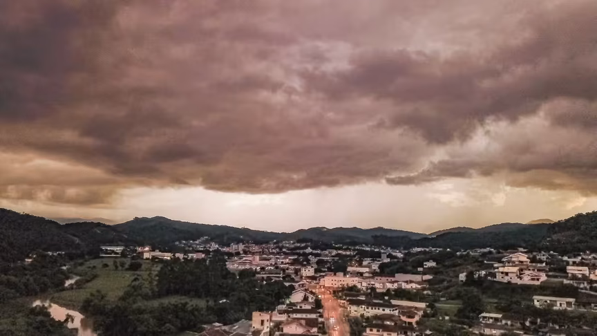 Drone clica virada do tempo que escureceu o céu de Brusque neste sábado
