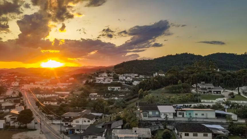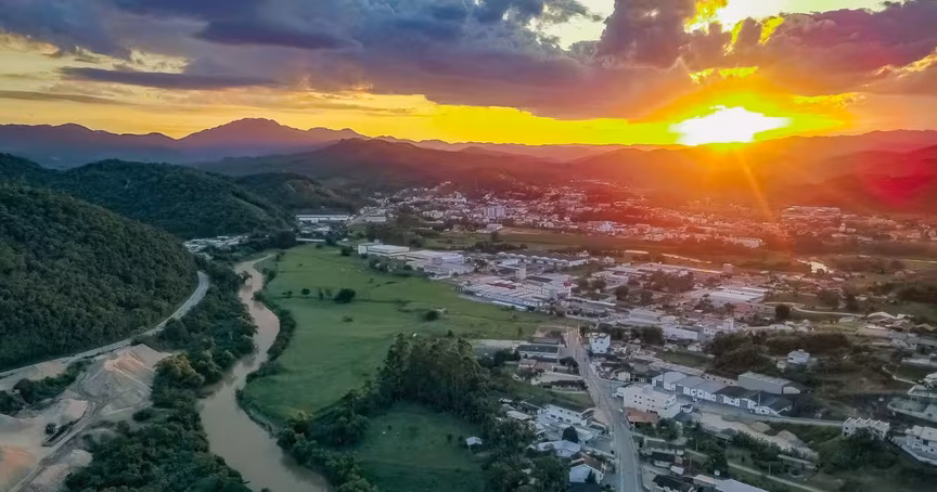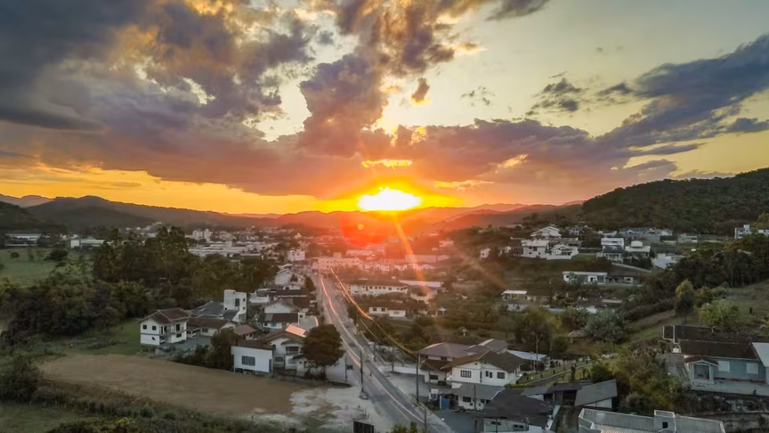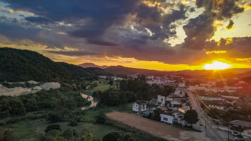 Drone registra entardecer mais lindo do mês em Brusque nesta quinta; veja as fotos