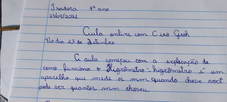 "As crianças se mostraram curiosas no que se refere ao funcionamento da estação. É bom esse interesse diante dos dados que o aparelho oferece; saber quanto choveu em milímetros ou qual a intensidade das temperaturas convertidas em graus, relata Juliana.