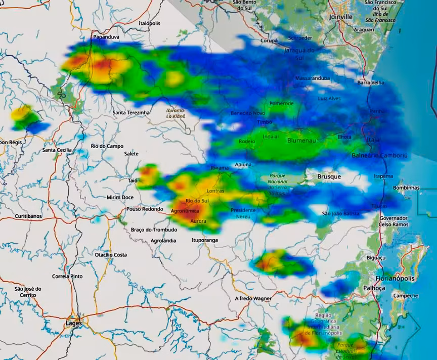 Estão ilustrados nas manchas em vermelho da figura do mapa. Um deles agia entre os municípios de Rio do Sul e Agronômica: