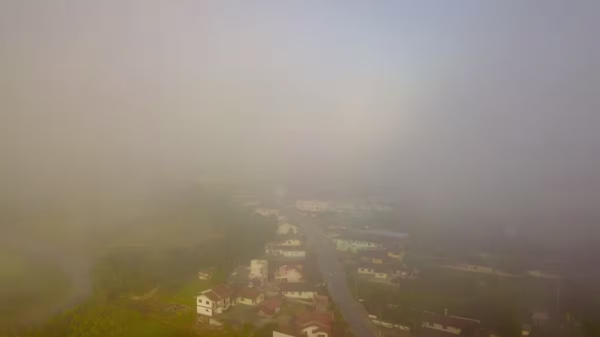 Brusque amanheceu tomada por um nevoeiro nesta terça-feira, 11. Segundo a meteorologista do AlertaBlu, Tatiane Martins, o dia no município deve seguir na presença do sol em meio à variação de nuvens devido a massa de ar seco em SC.