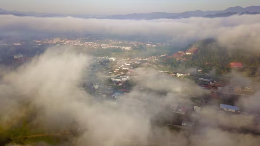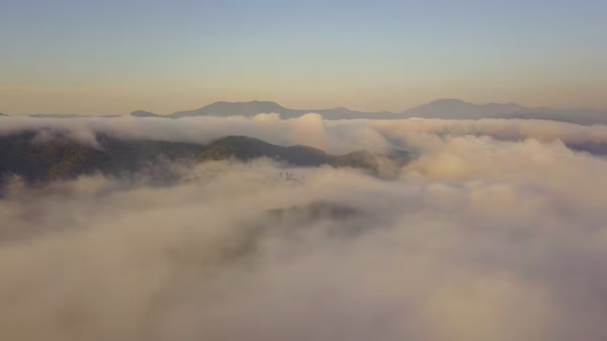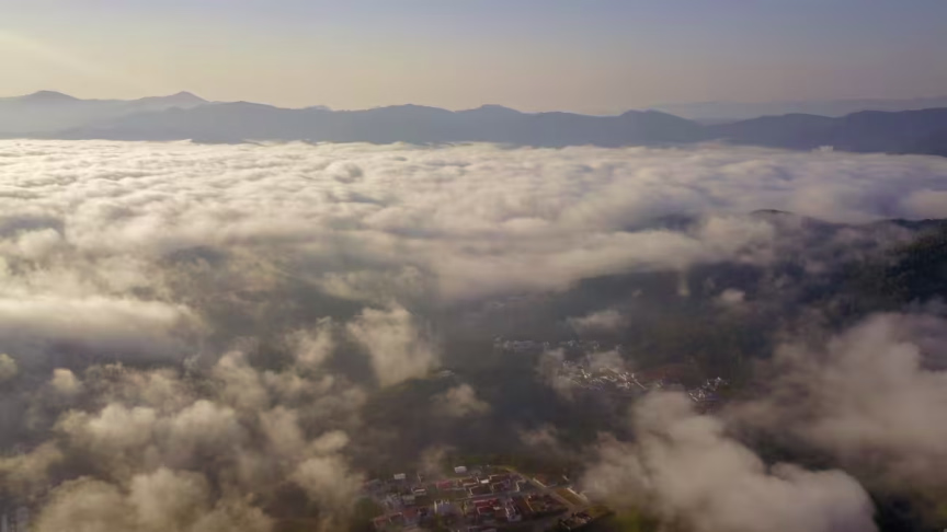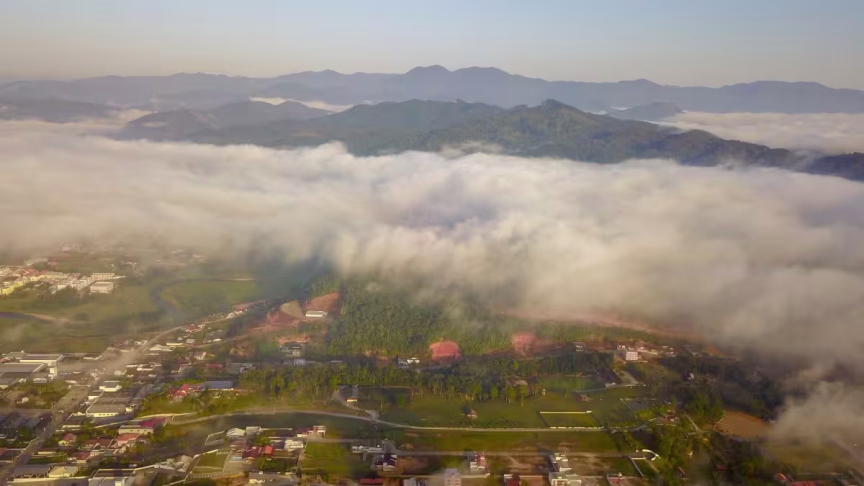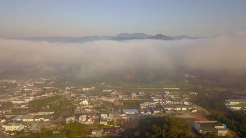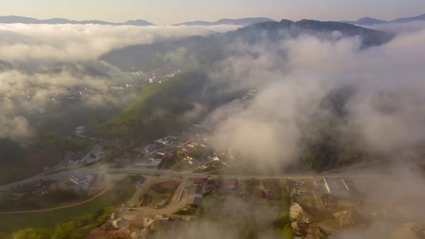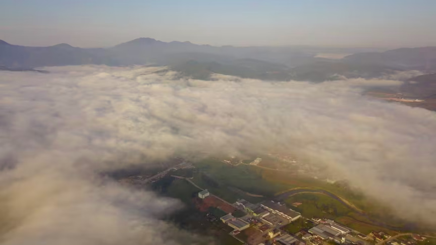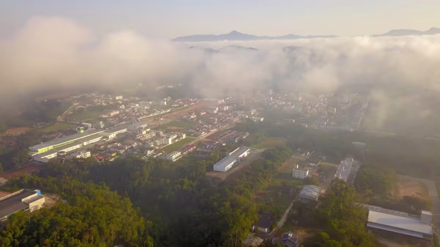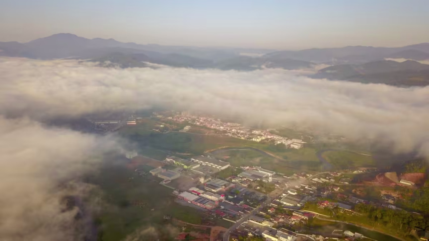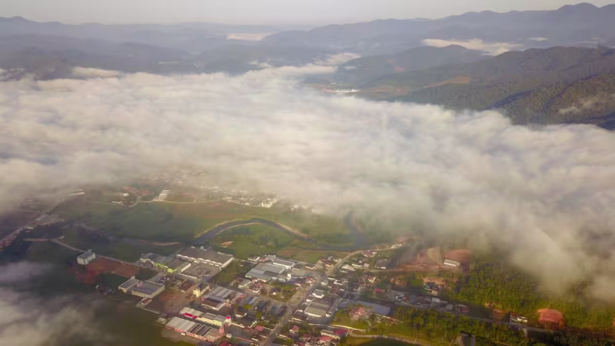Visto do alto: nevoeiro toma conta de Brusque nesta terça-feira