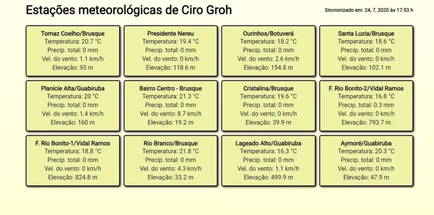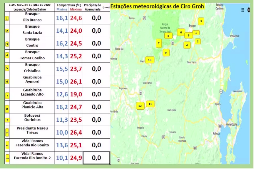 Acompanhe abaixo os índices extremos aferidos no Vale do Itajaí-Mirim nos seus respectivos locais descritos em anexo:
