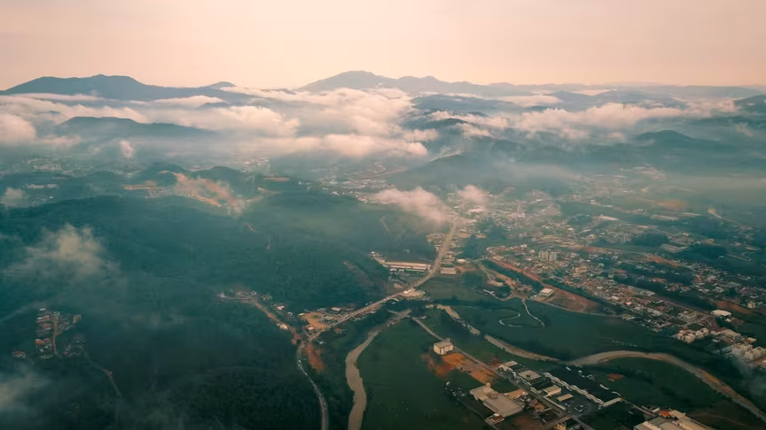 –Visto das alturas: quinta-feira de céu encoberto traz lindas imagens em Brusque