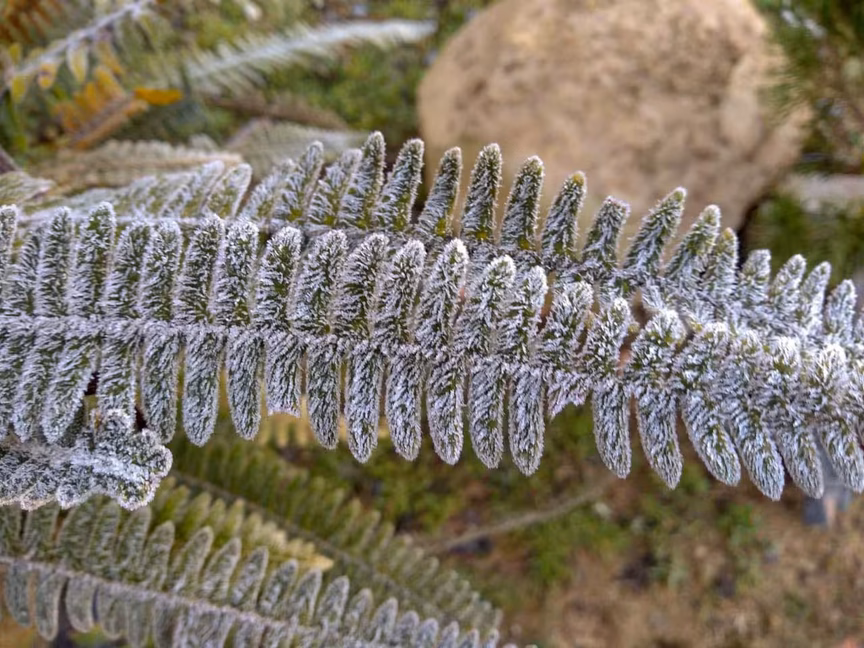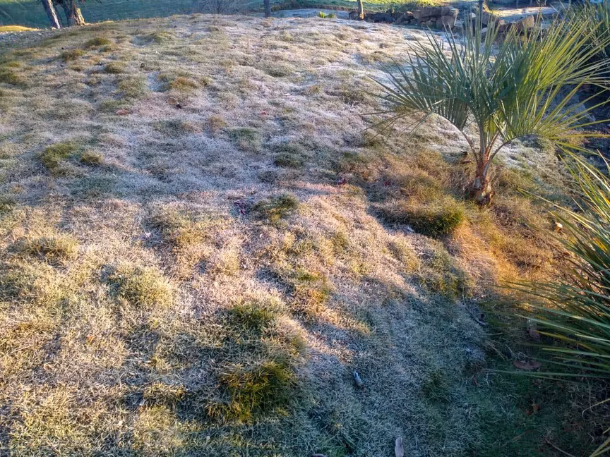 Dessa vez a visão observada se mostrou num encanto especial: a geada pintou de branco a paisagem local neste julho de 2021.