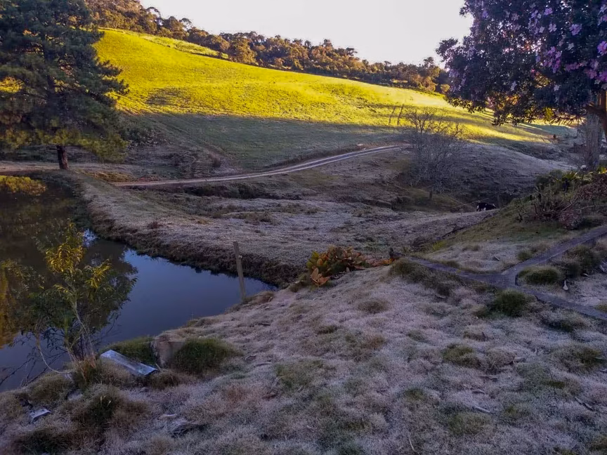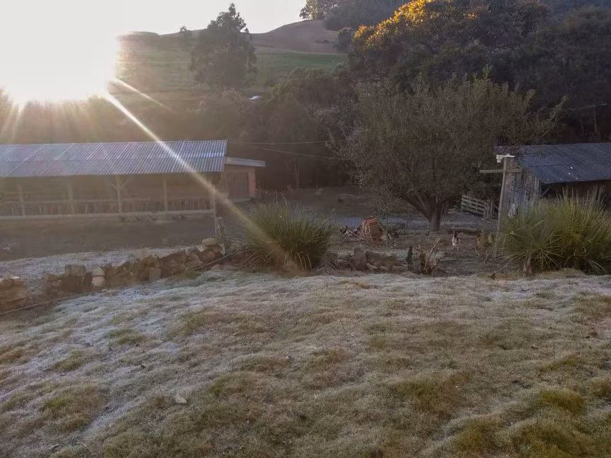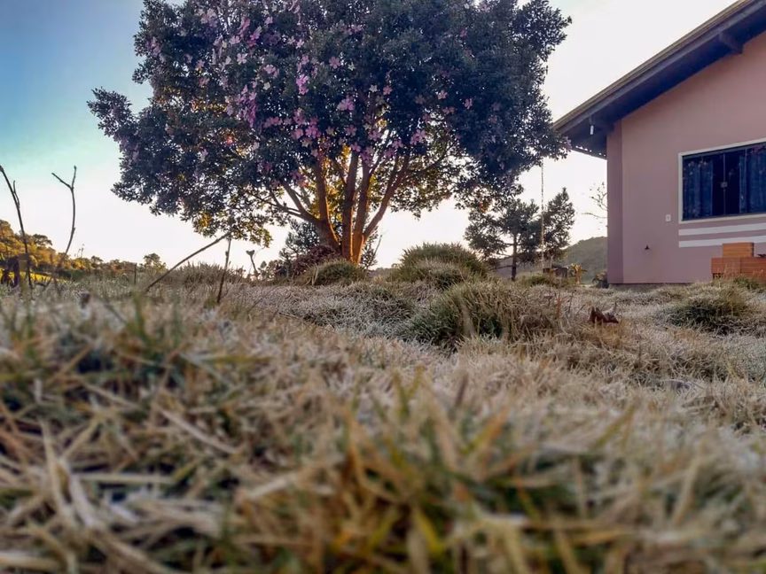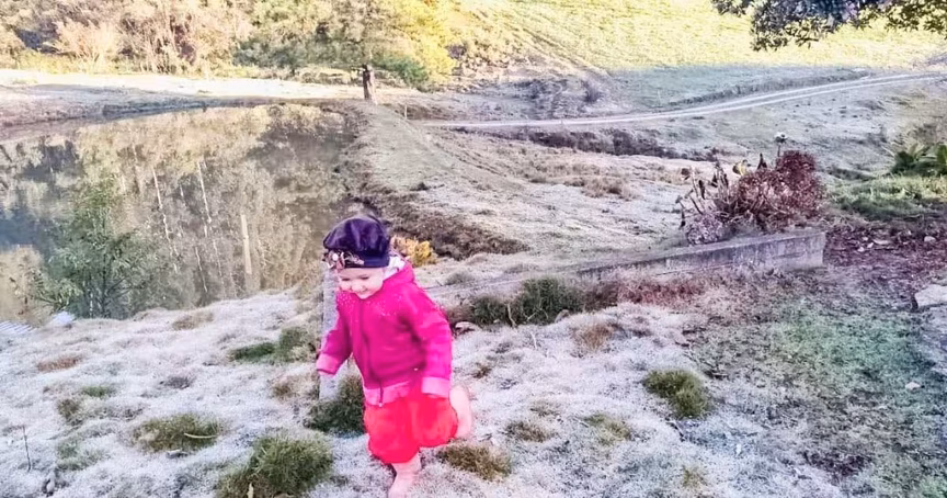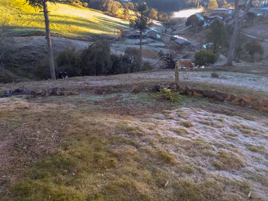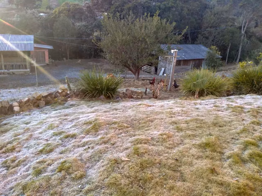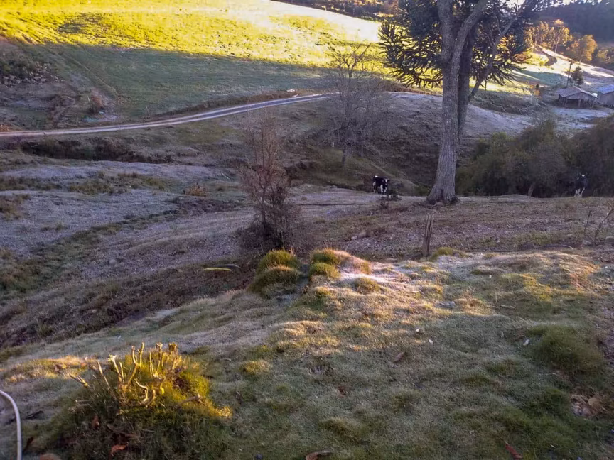 Frio: o entorno das nascentes do rio Itajaí-Mirim tomado pela geada