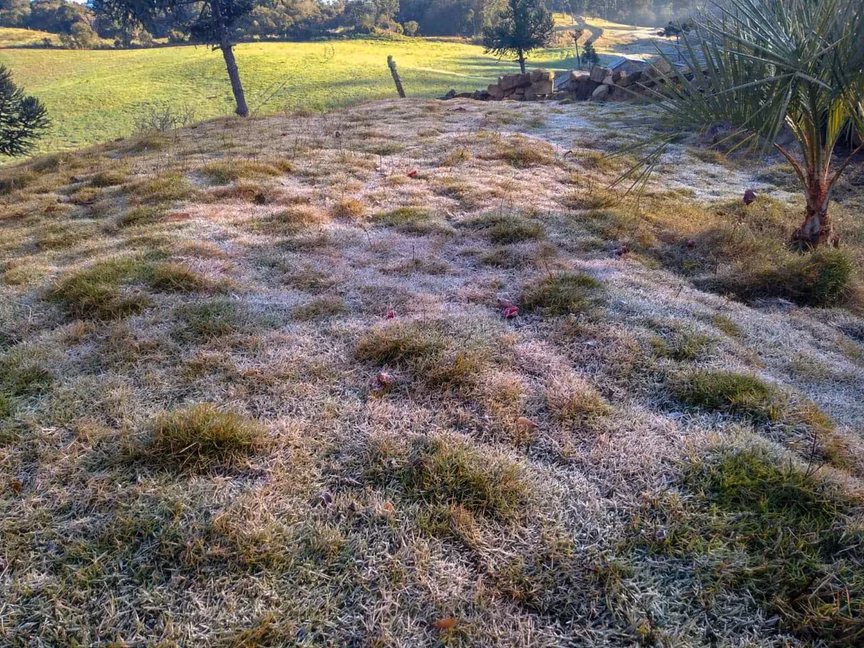 Podemos citar a localidade de Fazenda Rio Bonito, em Vidal Ramos, que amanheceu o dia com a paisagem pintada de branco pela ação do fenômeno.