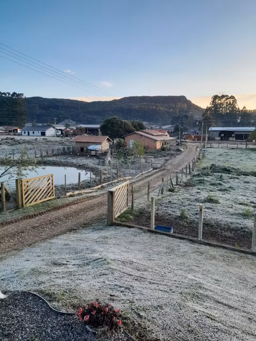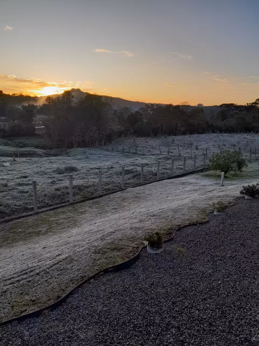Com dois décimos a menos, o Vale do Caminhos da Neve, lugar situado a cerca de 3 km do centro de São Joaquim, também no Planalto Sul, começou o dia em 7,6ºC. Diante do frio intenso, toda a paisagem local amanheceu coberta por uma considerável camada de gelo, proporcionando uma paisagem exuberante, típica do inverno joaquinense.