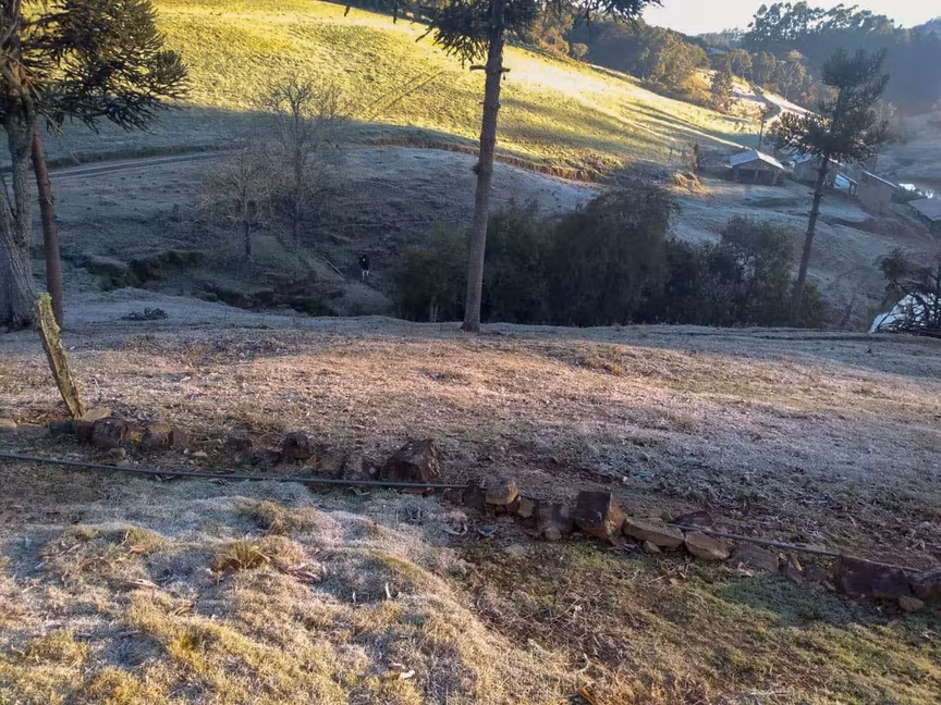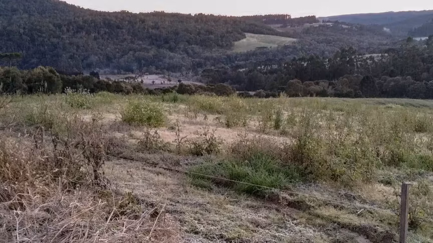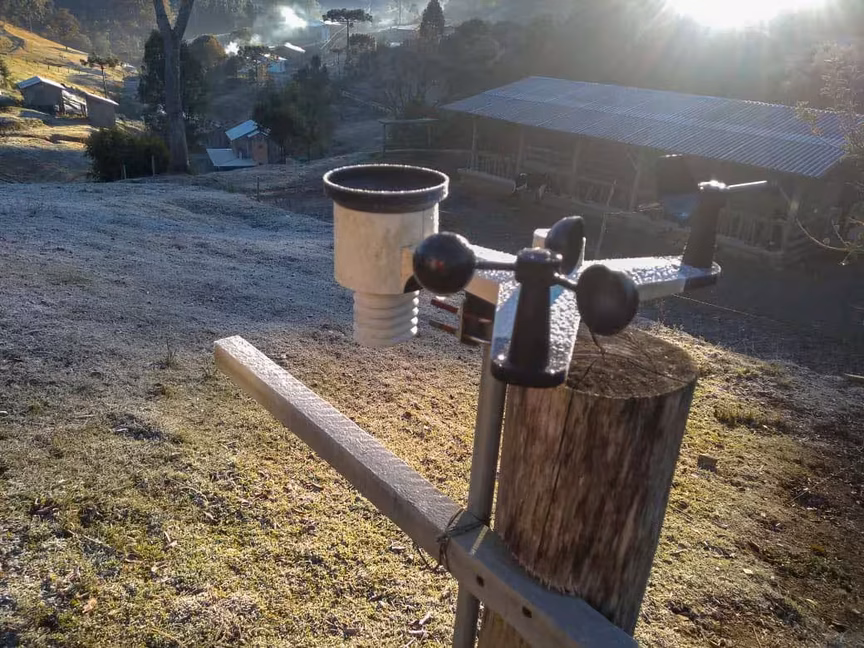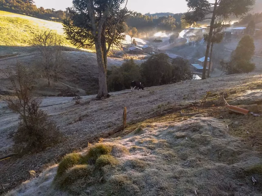 Podemos trazer como exemplo a localidade de Fazenda Rio Bonito, em Vidal Ramos, que começou o dia marcando -1,1ºC com ampla geada.