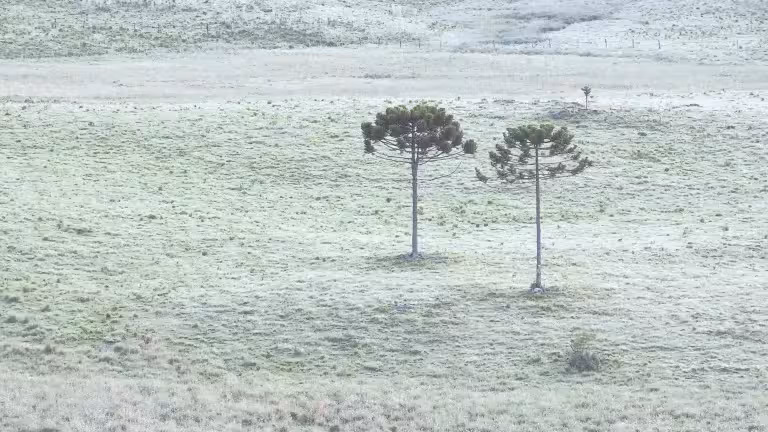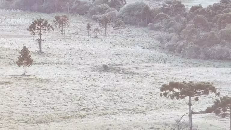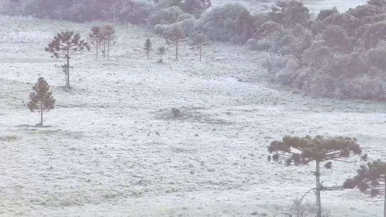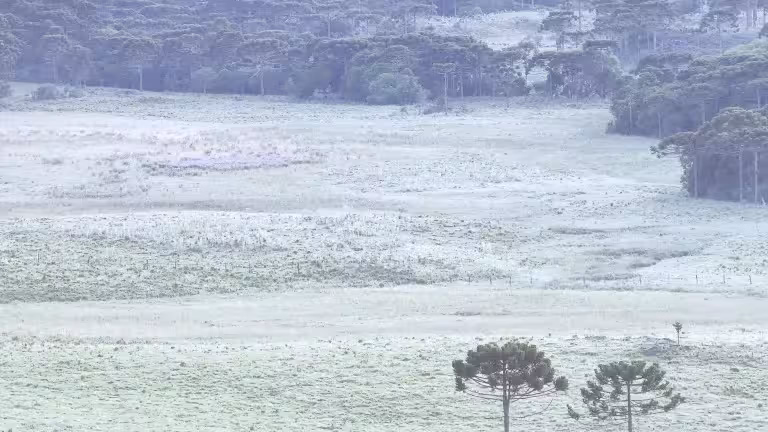 Municípios da região do Planalto Sul de SC amanheceram esta quinta-feira com os campos pintados com a cor da geada