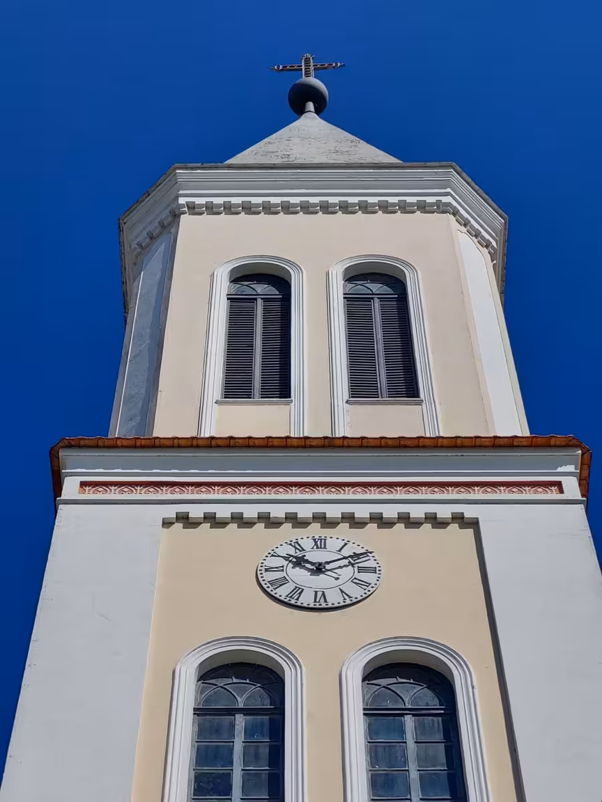Torre da Igreja Matriz da Paróquia São Luiz Gonzaga, onde podemos observar o tempo seco e ensolarado desta terça-feira em Brusque/Arquivo: Ciro Groh