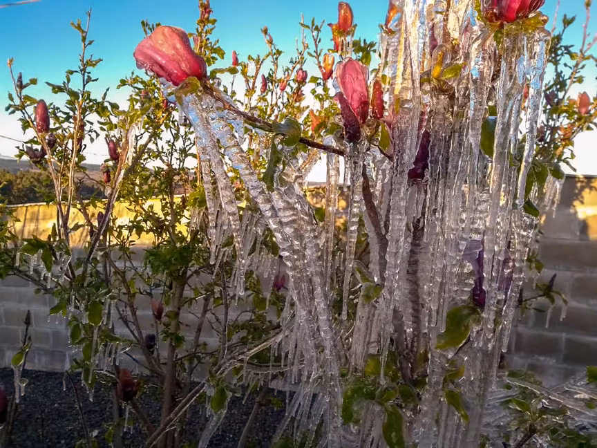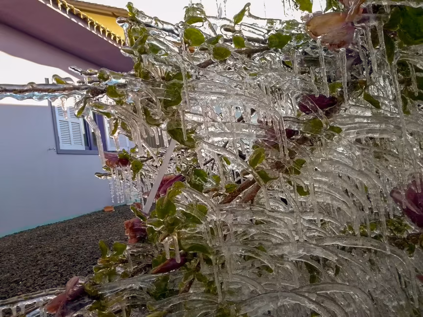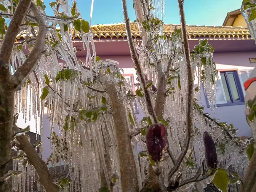 Com os termômetros marcando 8 graus negativos, o morador de Brusque, Ademir Scharf, envia belas imagens do fenômeno registrado naquele município