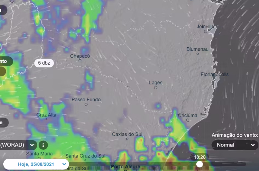 E o entardecer desta terça-feira já apontava instabilidades sobre o Vale do Itajaí, como podemos observar na imagem de radar, atualizada às 17h50: