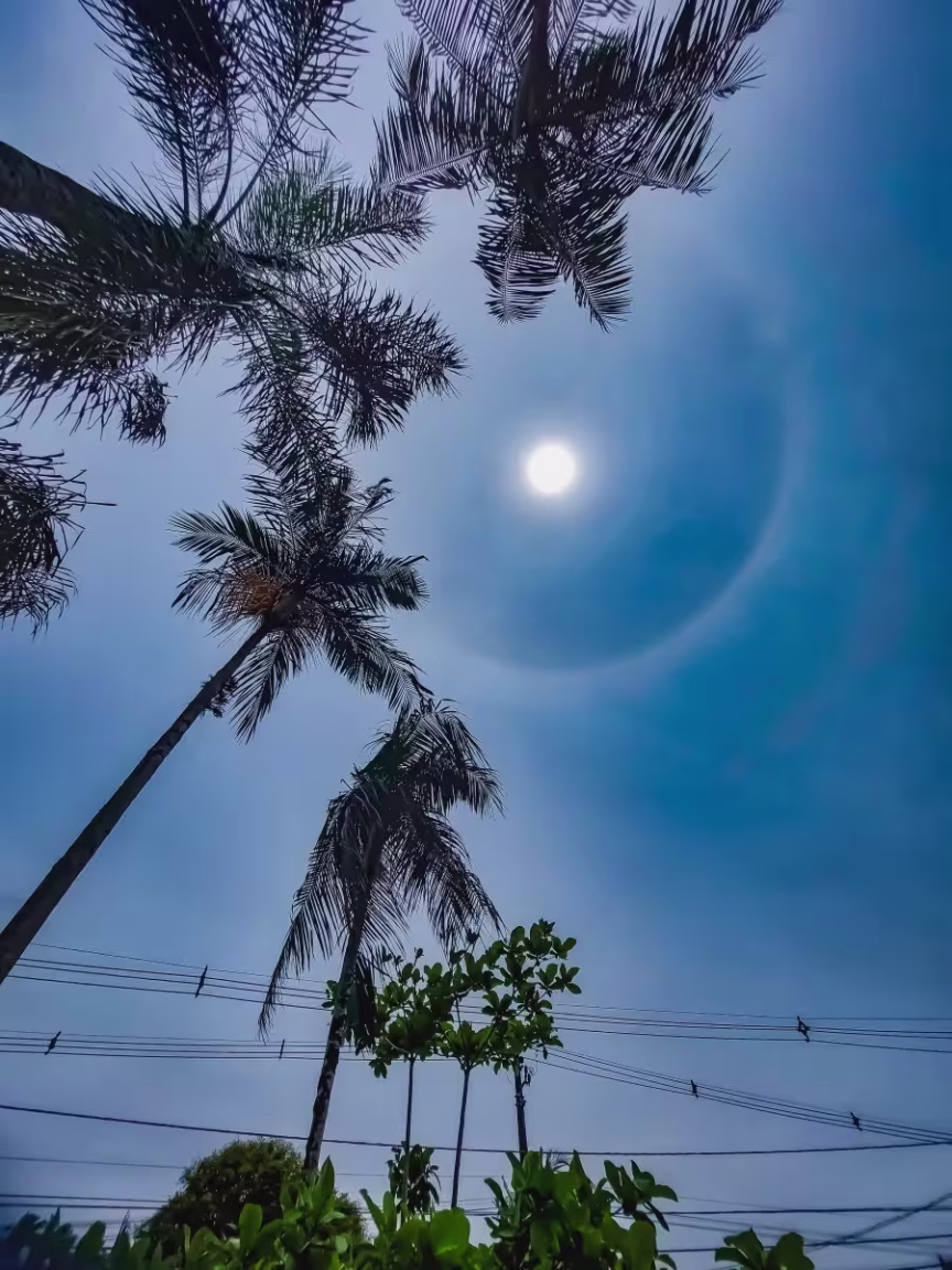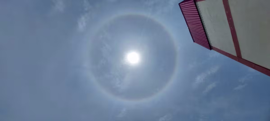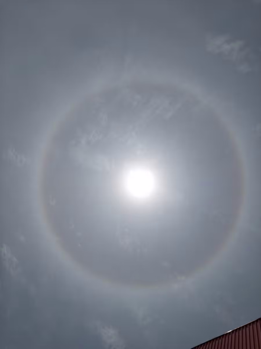 Segundo o meteorologista do AlertaBlu, Gabriel Cassol, esse anel colorido acontece devido à presença de cristais de gelo suspensos na atmosfera e a posição do sol em relação a eles. Isso forma uma espécie de arco-íris ao redor do astro.