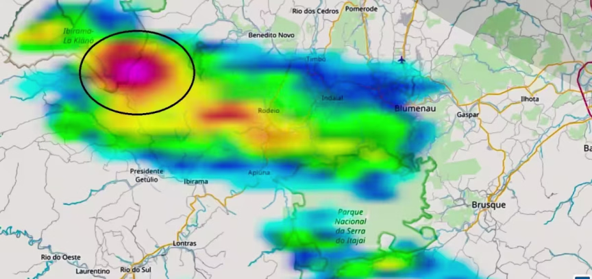 Junto com a chegada de ar frio veio a chuva, que pôde ser se observada através do Radar do Morro da Igreja, em pontos bem isolados do Vale do Itajaí ao entardecer desta sexta-feira.