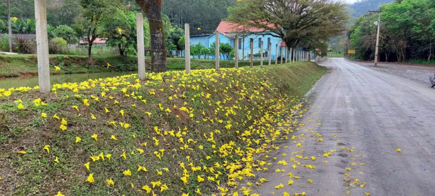 Essas flores exibem encanto até mesmo colorindo o chão, como podemos observar da galeria de fotos exposta a seguir. As imagens foram capturadas nos municípios de Botuverá, Presidenre Nereu e Vidal Ramos, como mencionado na legenda: