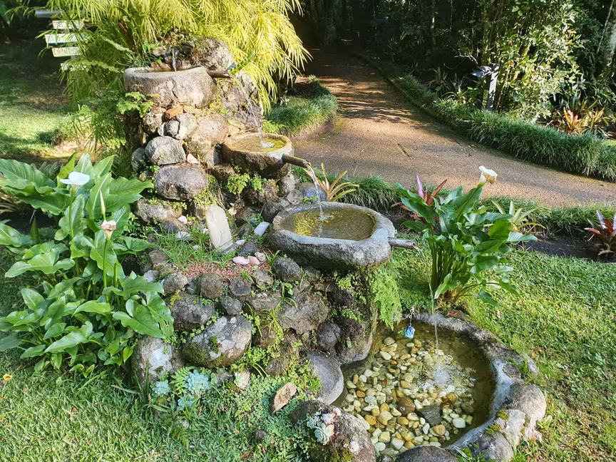 Mais do que passear por entre jardins e pomares, ou caminhar pela mata nativa que leva a cantinhos quase escondidos, como o meliponário, os diferentes ambientes convidam a fazer a pausa para um lanche, relaxar sentado num banco, no balanço ou deitado na rede, colher amoras ou admirar o voo das borboletas.