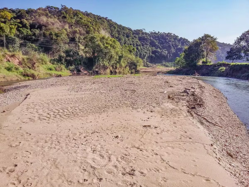 Com a estiagem, nível do rio Itajaí-Mirim alcança 73 cm, um dos menores da história