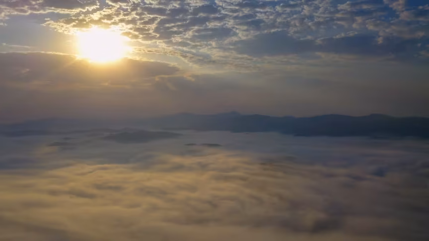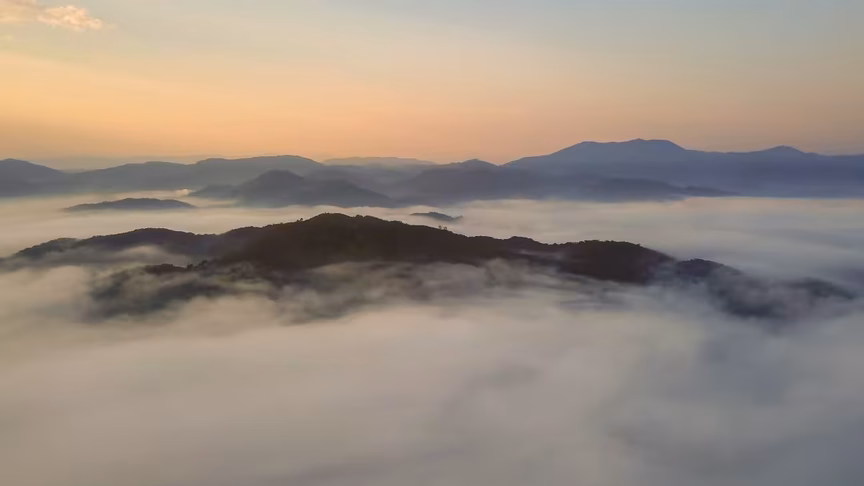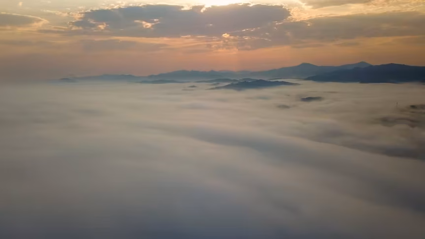 Nas alturas: o nevoeiro deste sábado em Brusque visto do alto