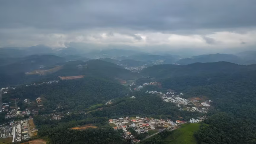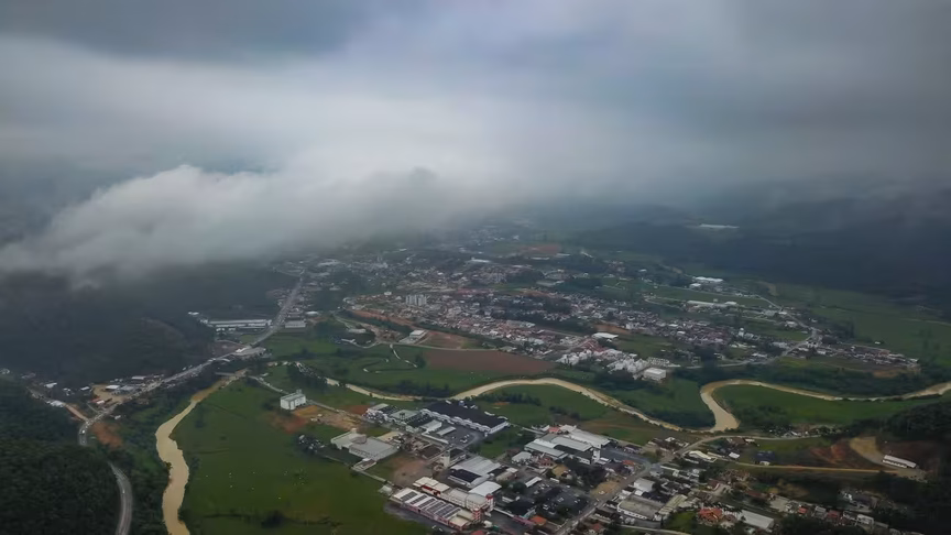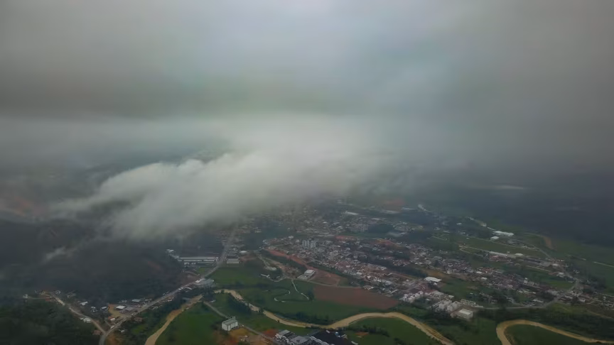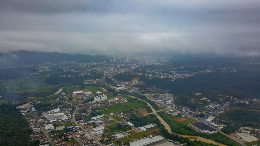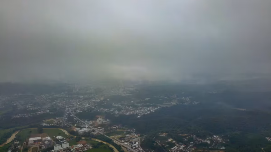 Na galeria abaixo estão algumas imagens aéreas. Elas mostram o cenário de céu fechado presente em Brusque no decorrer do dia nesta quinta-feira. O cenário de céu fechado de nuvens predominou durante o dia no município: