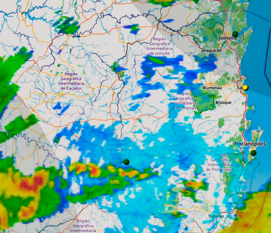 Segundo os meteorologistas do AlertaBlu, o Vale do Itajaí até pode ter chuviscos/chuva fraca até o final da noite, mas os profissionais não apontam para uma condição climática severa.