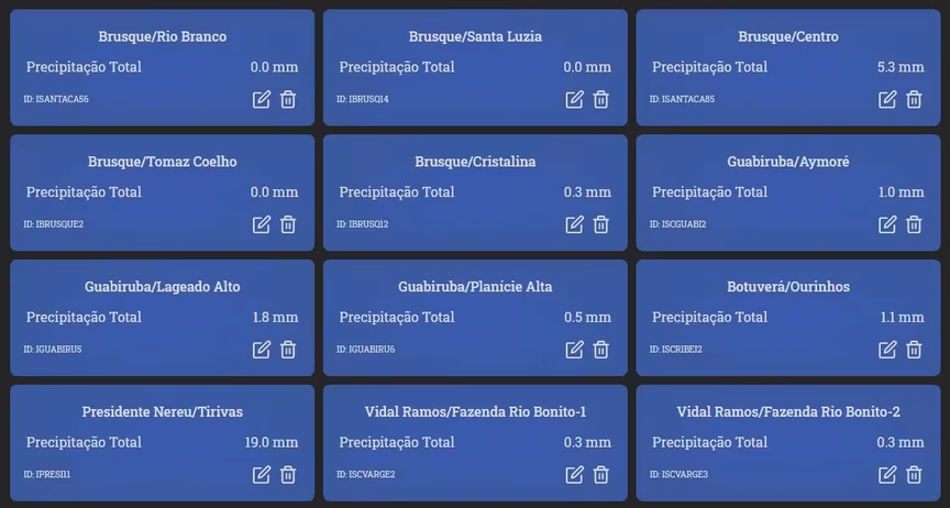 Abaixo estão os volumes de precipitação registrados nesta quarta-feira no Vale do Itajaí-Mirim até 14h30. Destaque para Presidente Nereu, com 19 mm acumulados: