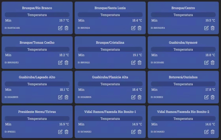 Brusque oscilou 18 a 19ºC de mínimas. Já Vidal Ramos, no Alto Vale, começou o dia nos 14ºC.