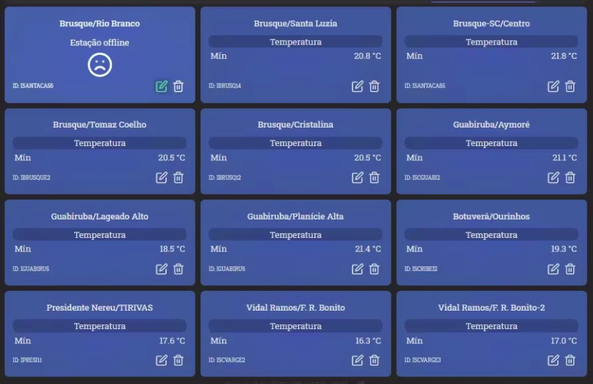 Vidal Ramos, com 16,3ºC, ficou com a mínima da região no período. Em Brusque, o dia amanheceu marcando 20 a 21ºC, com sensação de menos.