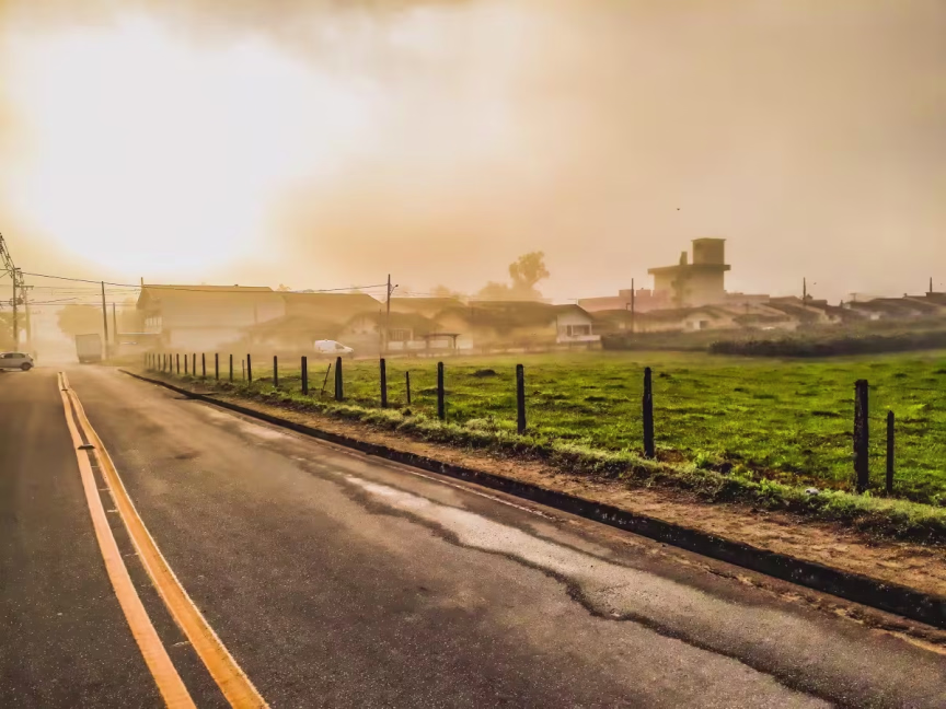 A semana dos brusquenses começou com forte nevoeiro presente no município nas primeiras horas desta manhã de segunda-feira, 20, e como diz a frase popular, cerração baixa, sol que racha.