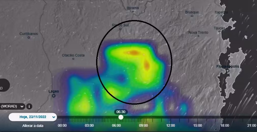 A previsão do tempo nesta quarta-feira, 23, promete uma condição favorável a trovoadas para a região de Brusque. A propósito, o dia já começou registrando chuva acompanhada de granizo em Imbuia, cidade localizada no Alto Vale do Itajaí.