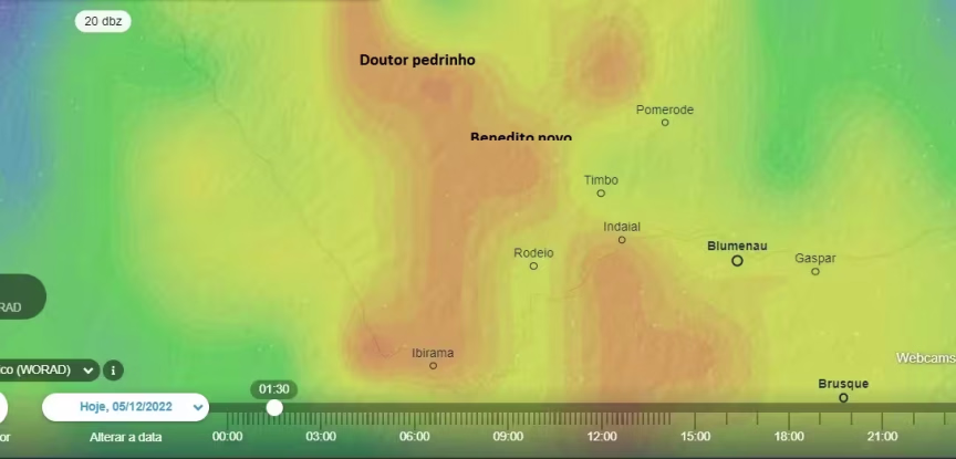 Nesse horário o pior da chuva mais intensa já havia passado por Timbó, Benedito Novo e Doutor Pedrinho. Já Brusque, Gaspar e Blumenau apresentava chuva apenas de moderada intensidade: