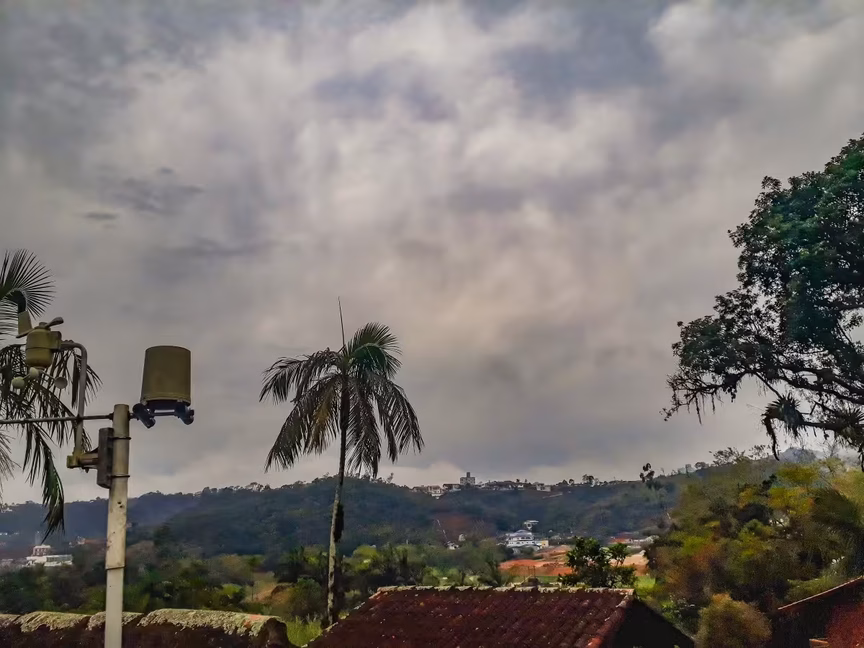 No sábado, céu encoberto na maior parte do dia, com rápidas aberturas de sol e condição para pancadas de chuva alternadas por alguns períodos de melhoria (céu nublado, mas sem chuva).