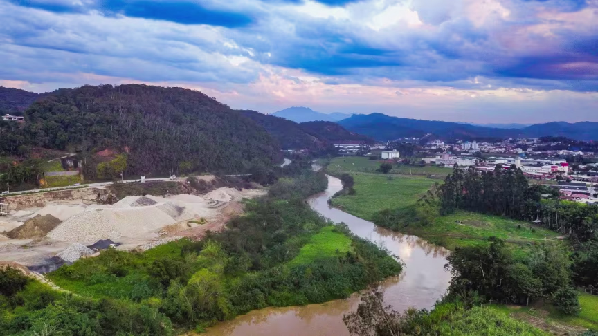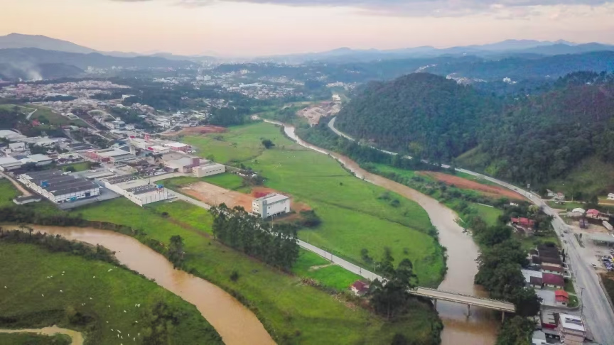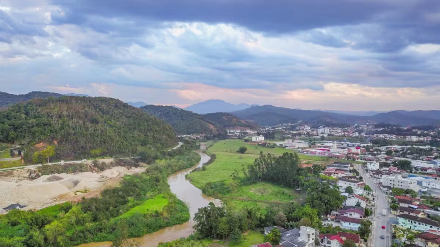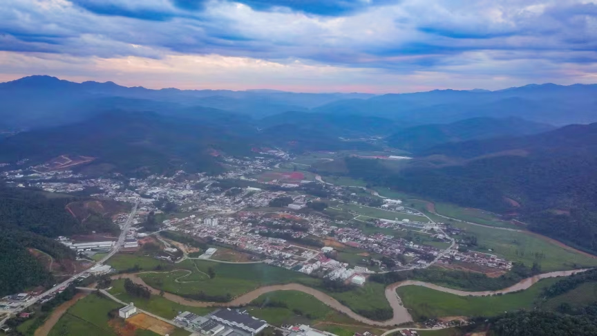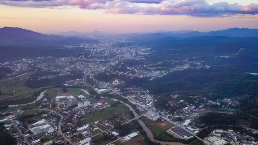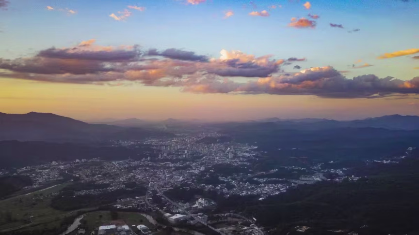 Fiquem com belas imagens capturadas ao cair da tarde, mostrando Brusque do alto:
