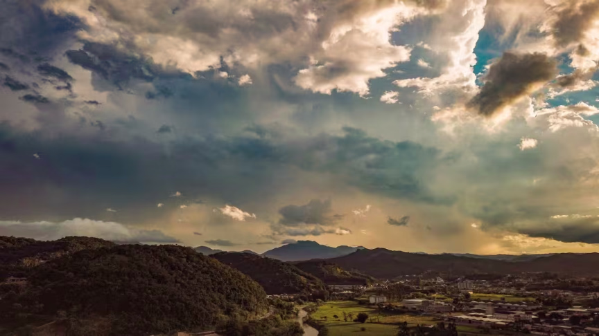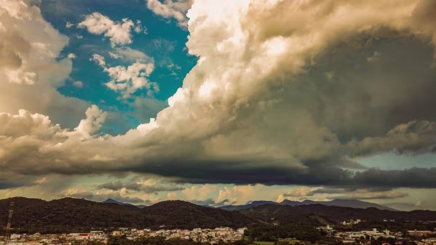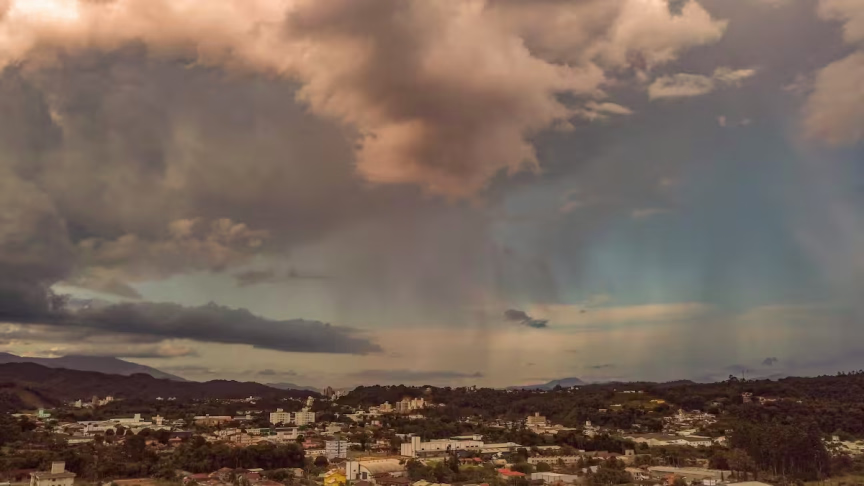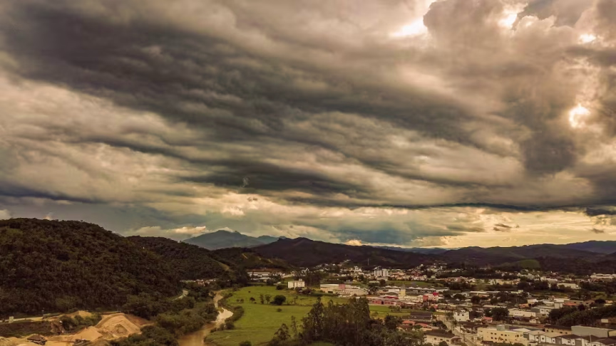 O calor de até 34ºC registrado em Brusque neste sábado, 13, potencializou a formação de núcleos de trovoadas a partir da tarde no município.
