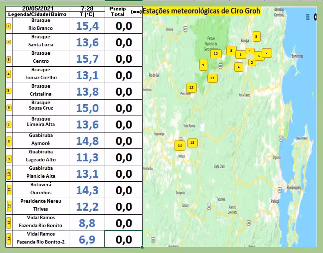 O tempo neste maio de 2021 está se destacando por conta das baixas temperaturas assinaladas no Vale do Itajaí-Mirim ao longo do mês, principalmente nas madrugadas.