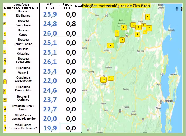 Depois que Brusque registrou sua madrugada mais abafada deste verão de 2021, a quinta-feira, 4, amanheceu marcando temperaturas mínimas entre 24 a 26ºC no município.