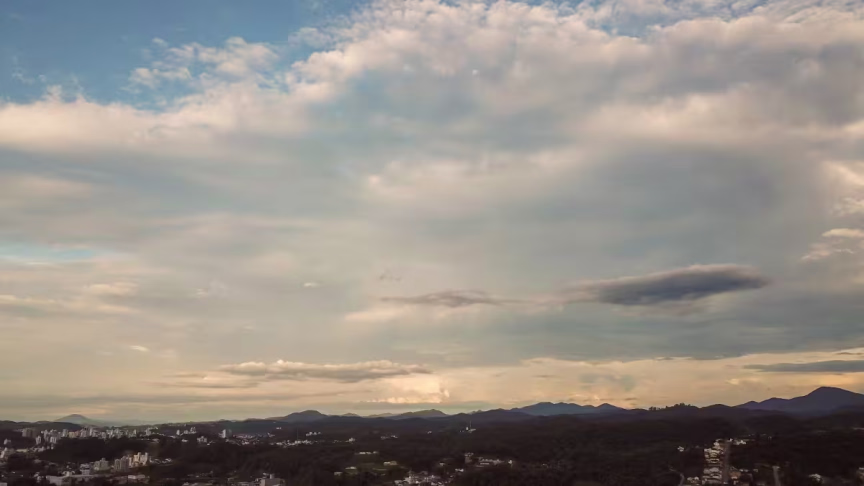 São fotografias que traduzem o cenário presente no município ao final do dia. Lá do alto, a paisagem brusquense parece ficar ainda mais bela: