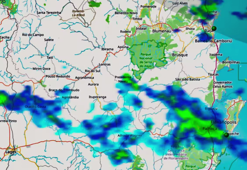 A instabilidade prevista até que chegou ao Vale do Itajaí-Mirim durante à tarde, porém, trouxe apenas chuva de fraca intensidade no período, acumulando assim, baixos volumes nos municípios do Vale do Itajaí-Mirim.