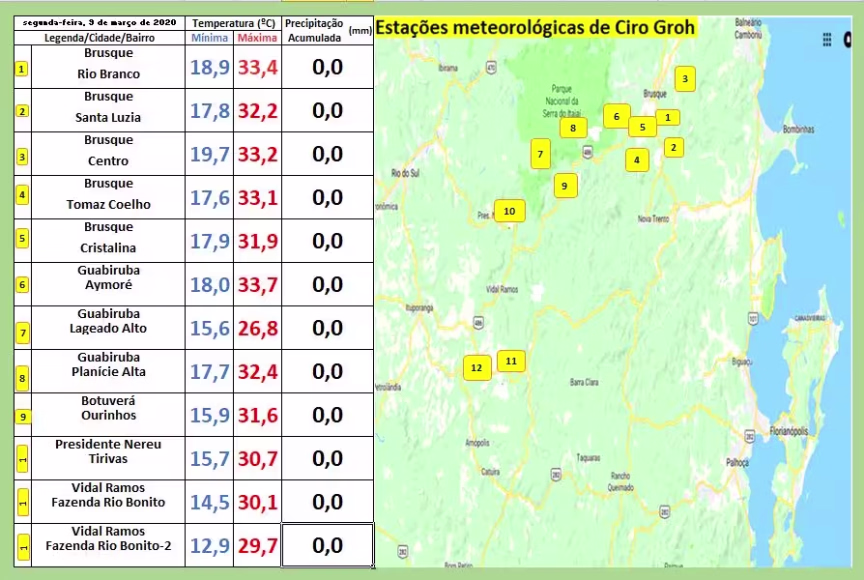 Depois de um final de semana com temperaturas elevadas, o calor chegou com ainda mais força nesta segunda-feira, 09, em Brusque. No decorrer da tarde, minhas estações de monitoramento mostraram números típicos do alto verão.