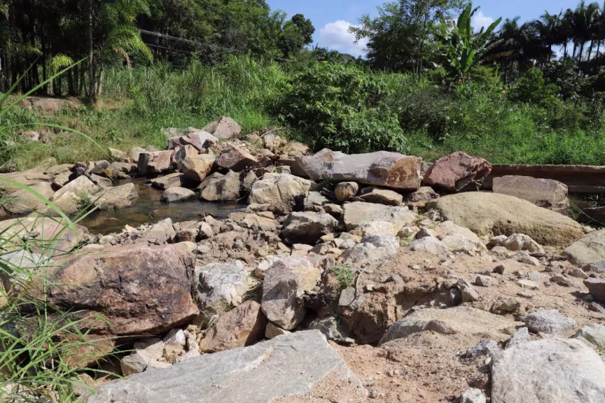 E por falar nesse município, segue na imagem abaixo o local onde é feita a captação de água, no bairro Guabiruba Sul. Um cenário muito preocupante que vem mostrar aos guabirubenses a extrema necessidade de fazer o uso consciente do precioso líquido.