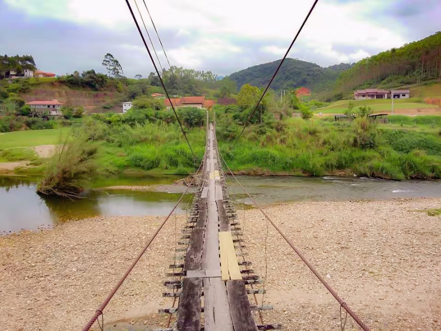 Imagem de Botuverá, registrada em 18 de maio de 2018, há exatos 2 anos portanto. Podemos observar através dela, o baixo nível do rio Itajaí-Mirim, sentindo os efeitos da estiagem já naquela ocasião: