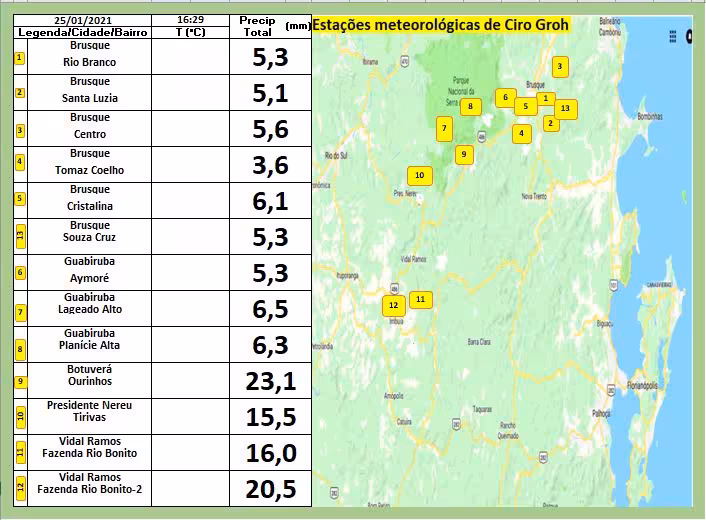 A boa notícia que podemos trazer aos nosso leitores vem dos pluviômetros. Apesar da forte nebulosidade pelo céu do Vale do Itajaí, baixos volumes de precipitação foram registrados no decorrer do período.