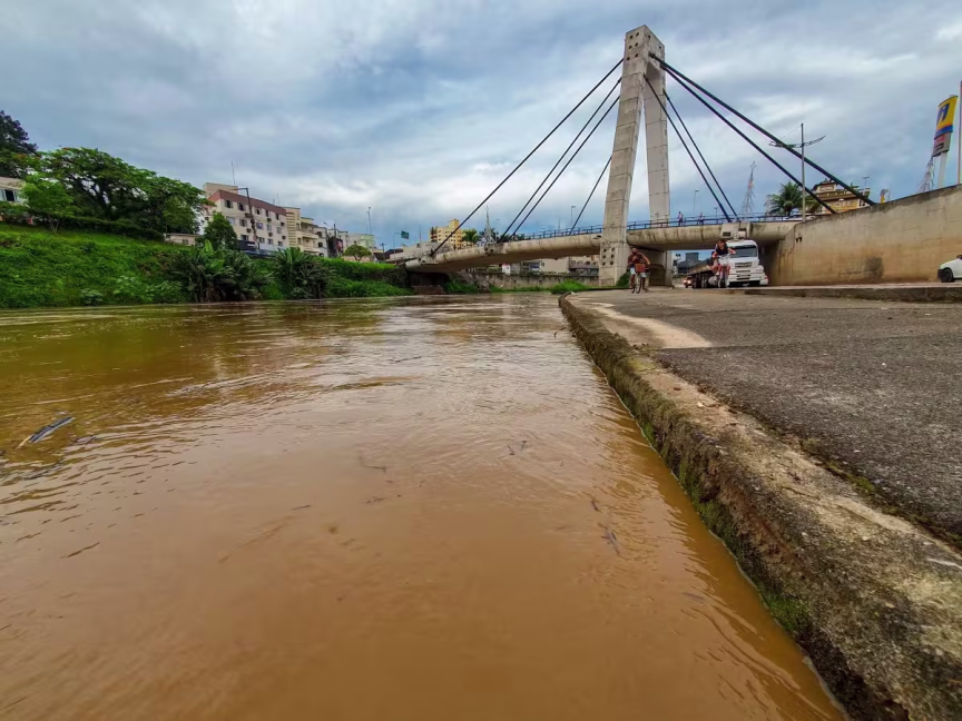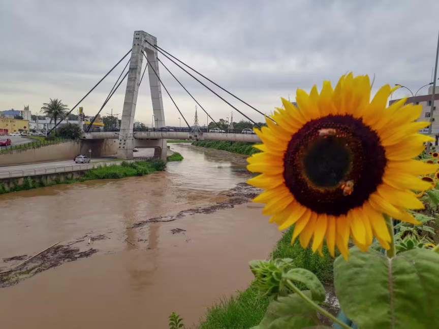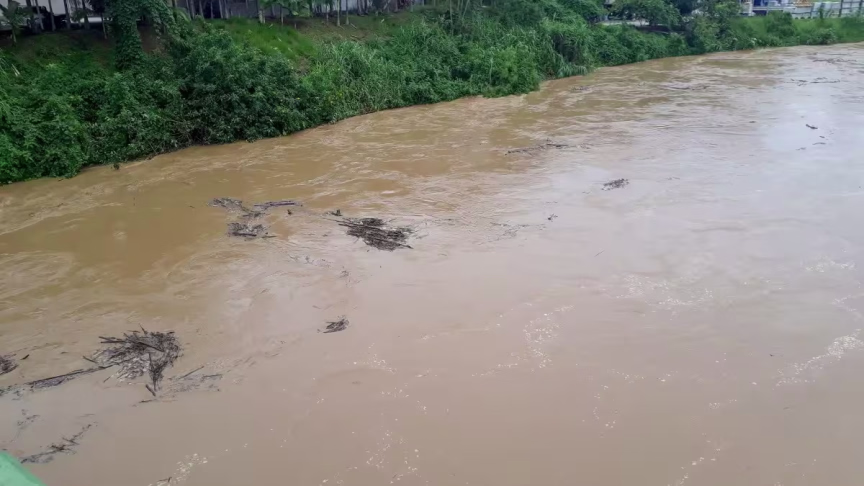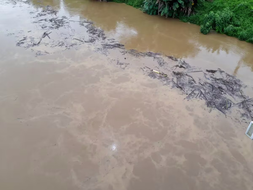 A cheia repentina do rio Itajaí-Mirim nesta tarde de quinta-feira, 03, em Brusque, trouxe consigo muita sujeira trazida pela água barrenta.