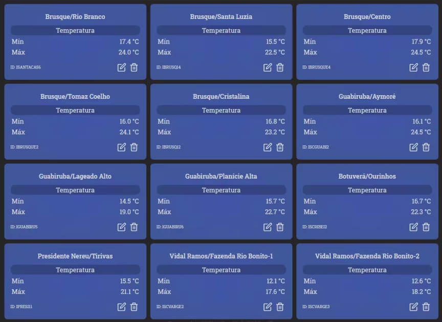 No bairro Lageado Alto, em Guabiruba, o pico do dia não passou dos 19ºC. Já no Alto Vale, em Vidal Ramos, a máxima foi de apenas 18ºC à tarde.